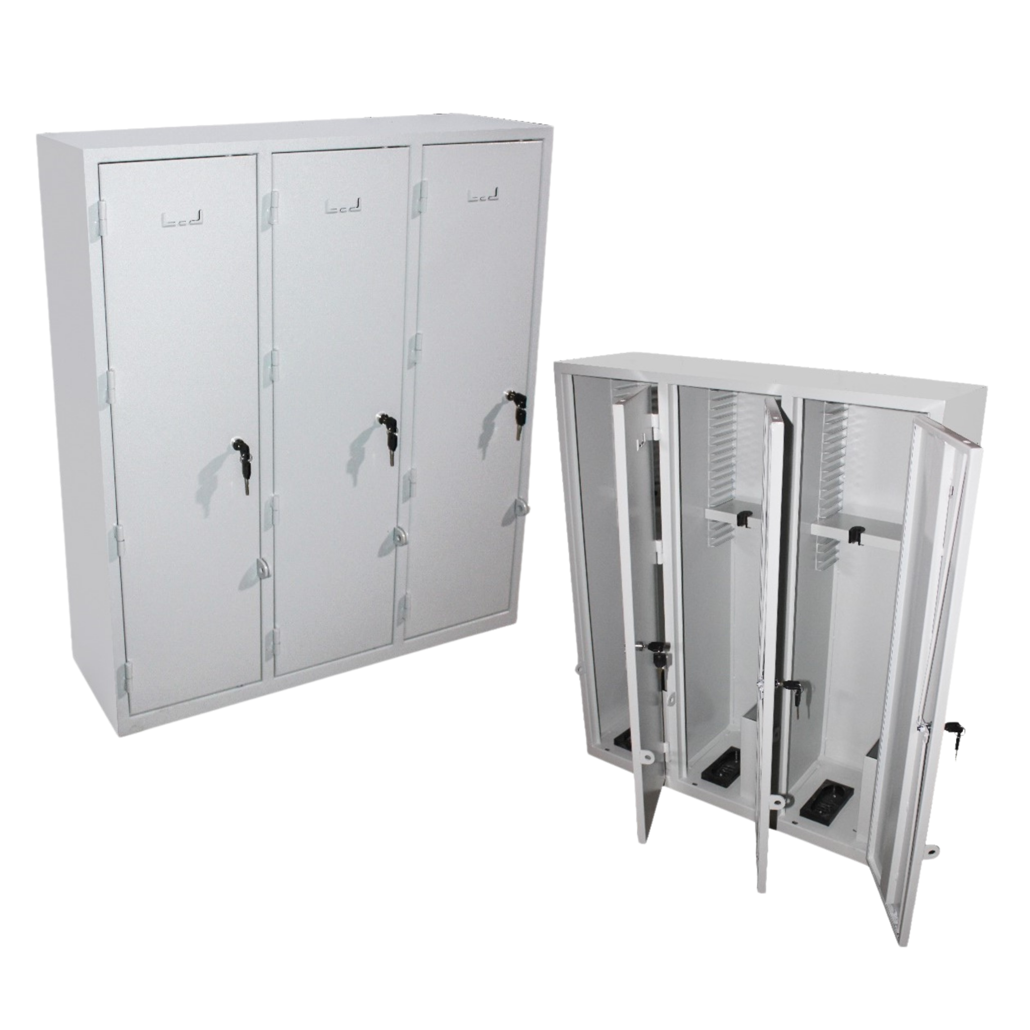 الوصف: خزانة أسلحة فولاذية بثلاثة أبواب مع مساحة تخزين فردية