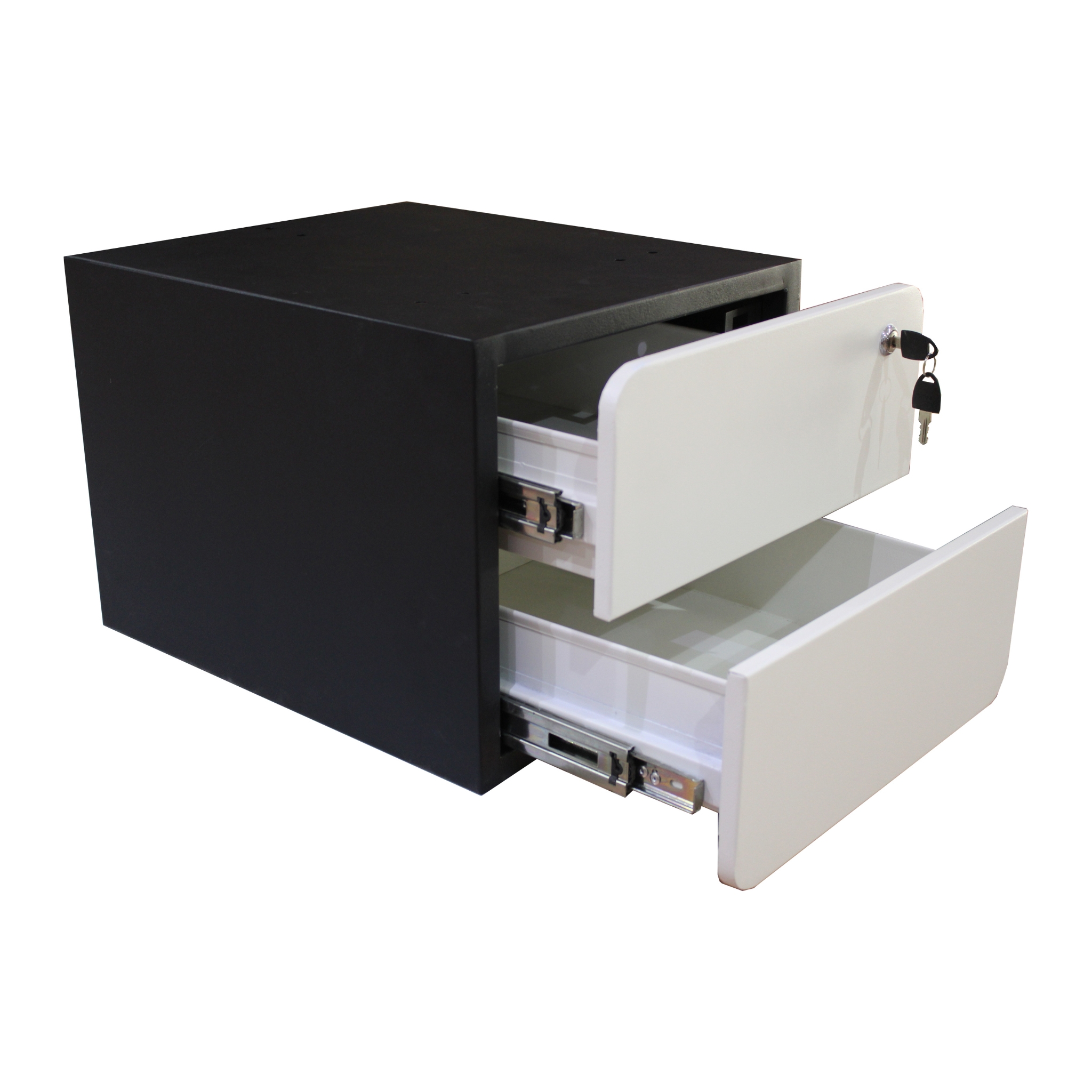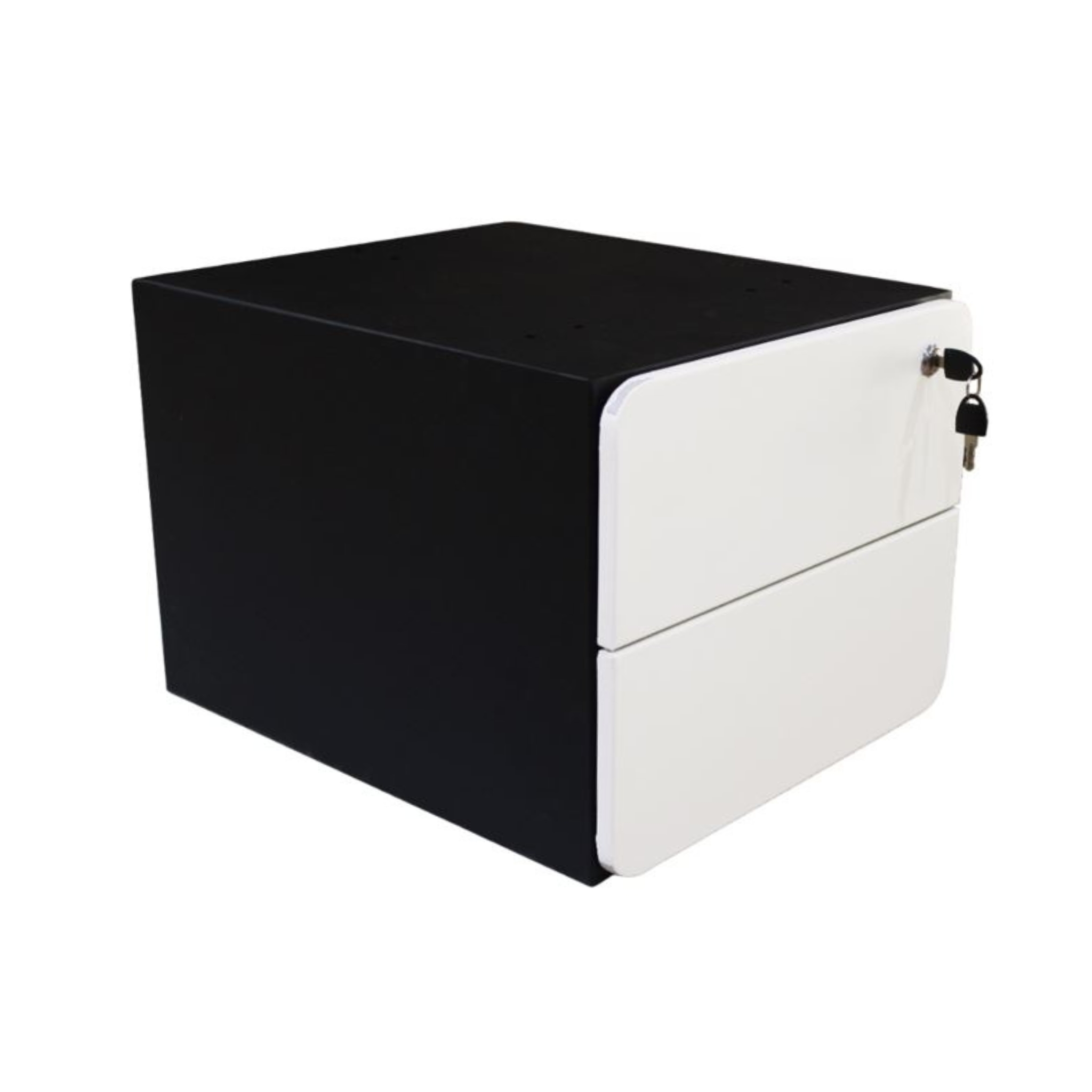 Description: Your modern bedside comodino with two drawers with black and white feel