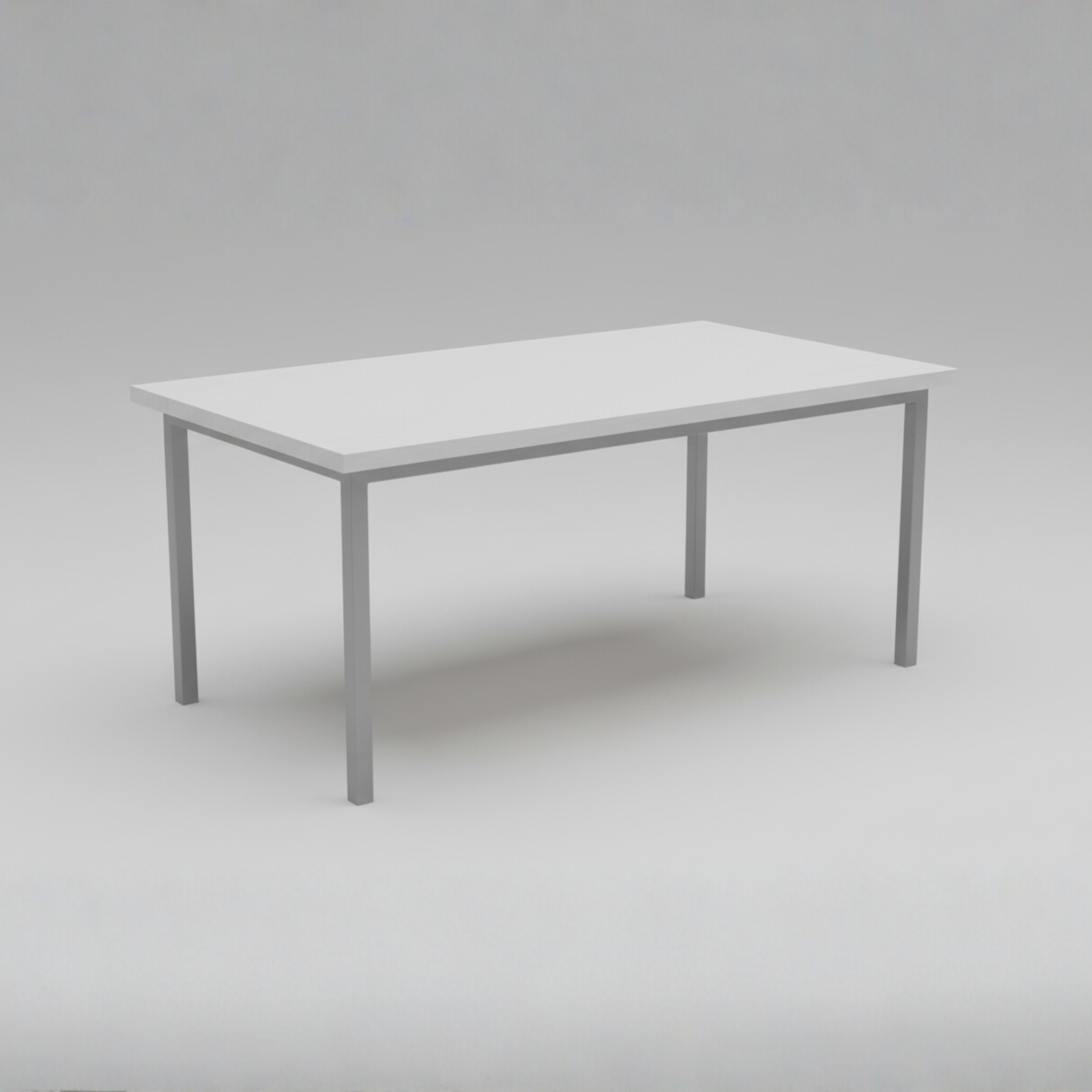 A modern rectangular table with a high-quality white textured wooden top (34mm) and a durable metal base finished in RAL 7040-FT. Sized 150×70×75 cm (also available in 160×80 cm), this piece combines elegance and strength — ideal for dining, office, or living spaces.